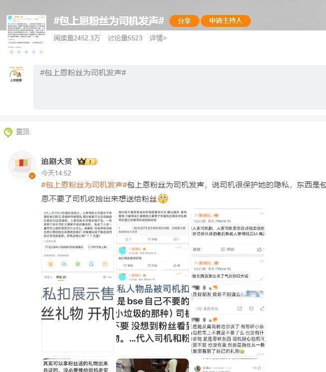不过事情很快出现了反转,有知情网友爆料,实际情况是包上恩团队丢弃了粉丝礼物,司机只是拍照问有没有人要这些物品,这就变成了"罗生门",真相到底如何,恐怕只有当事人最清楚。